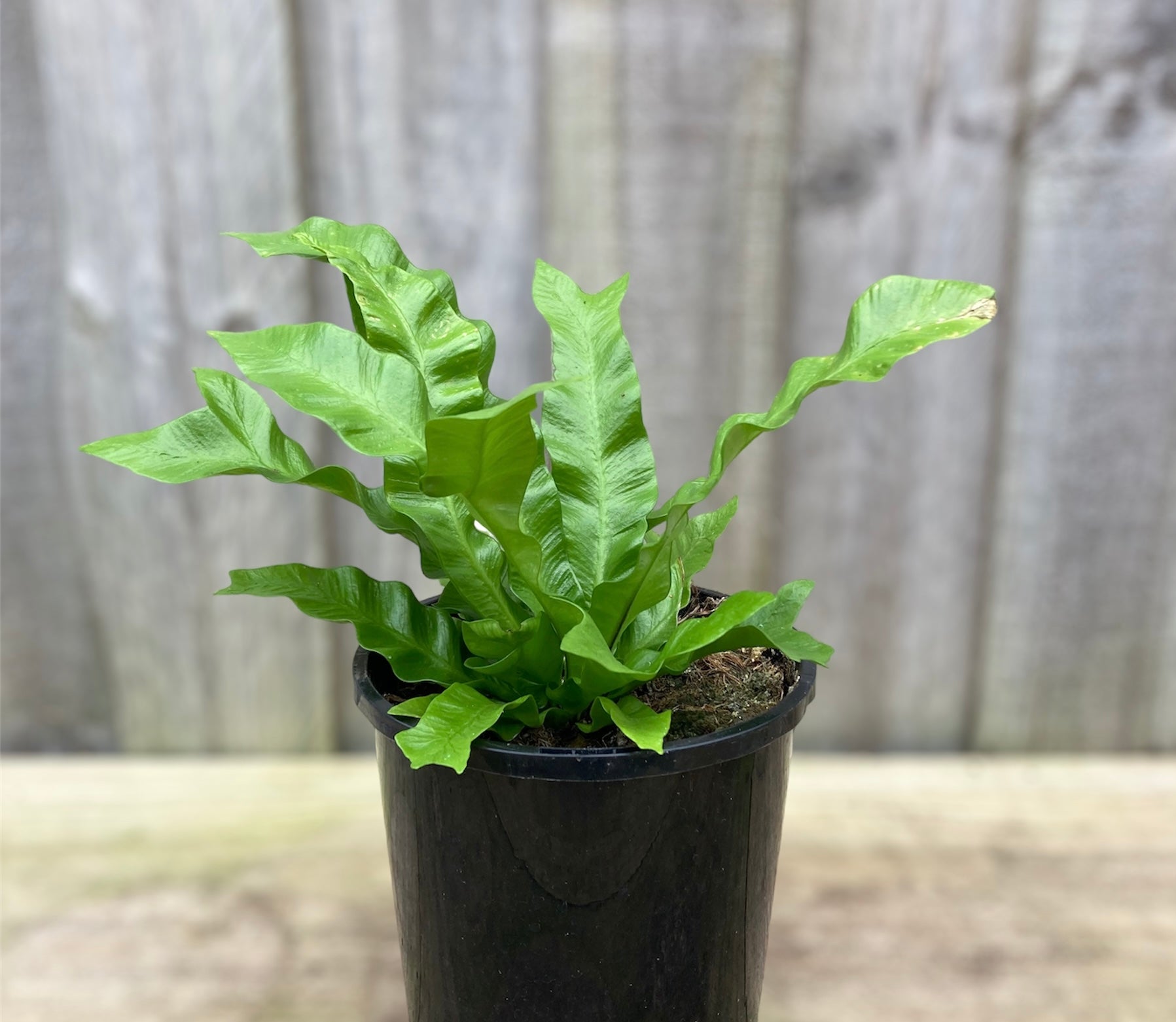 Bird's nest ferns are epiphytes, naturally growing on other plants. They produce upright, spoon-shaped, vibrant green wavy fronds emerging from a central rosette. When planted outside the fronds can reach lengths of up to 1.5 meters, those grown indoors typically attain about 0.5 meters. These ferns grow slowly and are ideally planted in spring, although indoor cultivation can begin at any time throughout the year.
