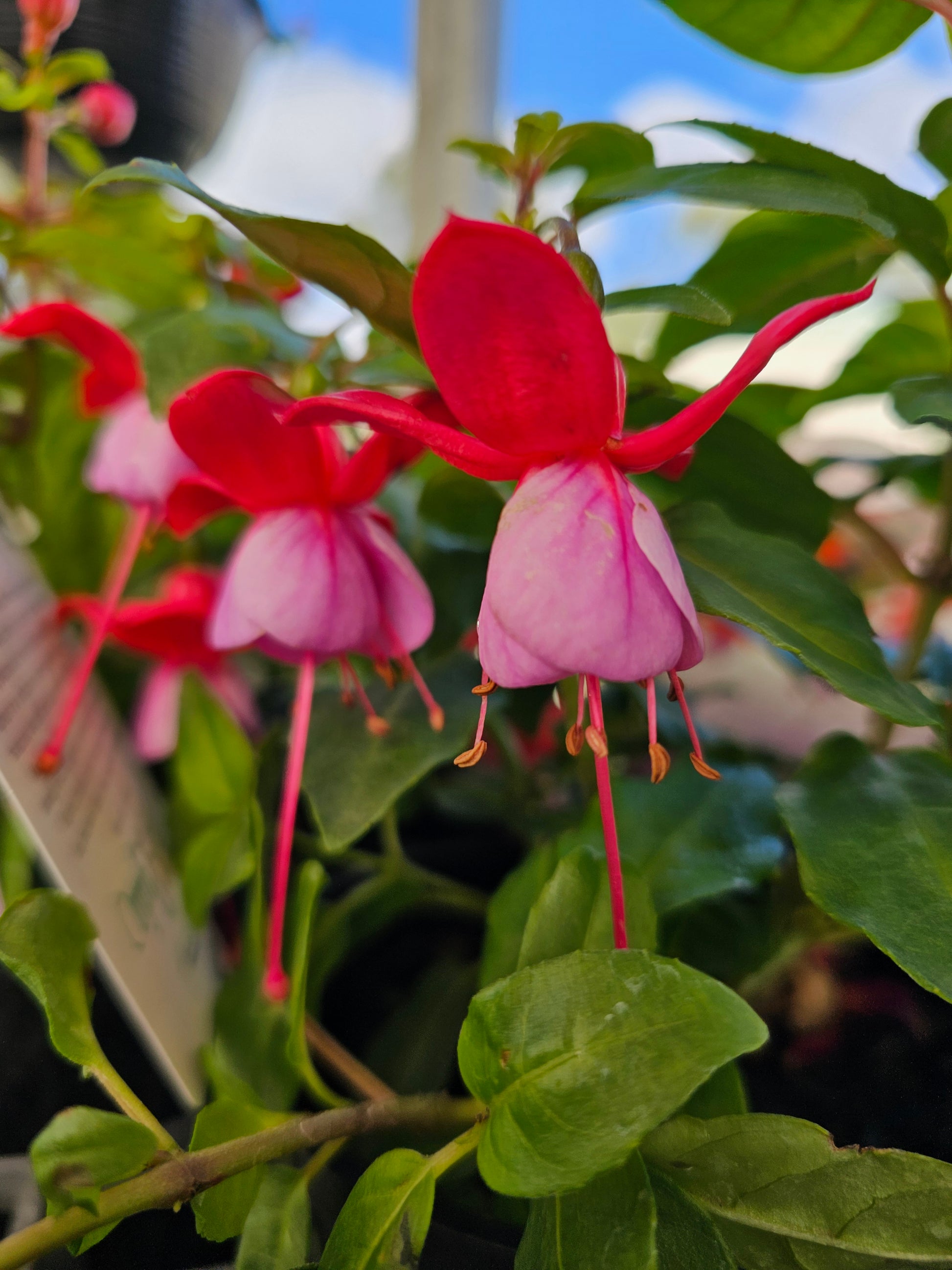 Fuchsia 'Bella Lydia' has a pale pink and crimson pink coloured flower with dark green leaves. Perfect for pots, packs and hanging baskets. Suitable for urban spaces.